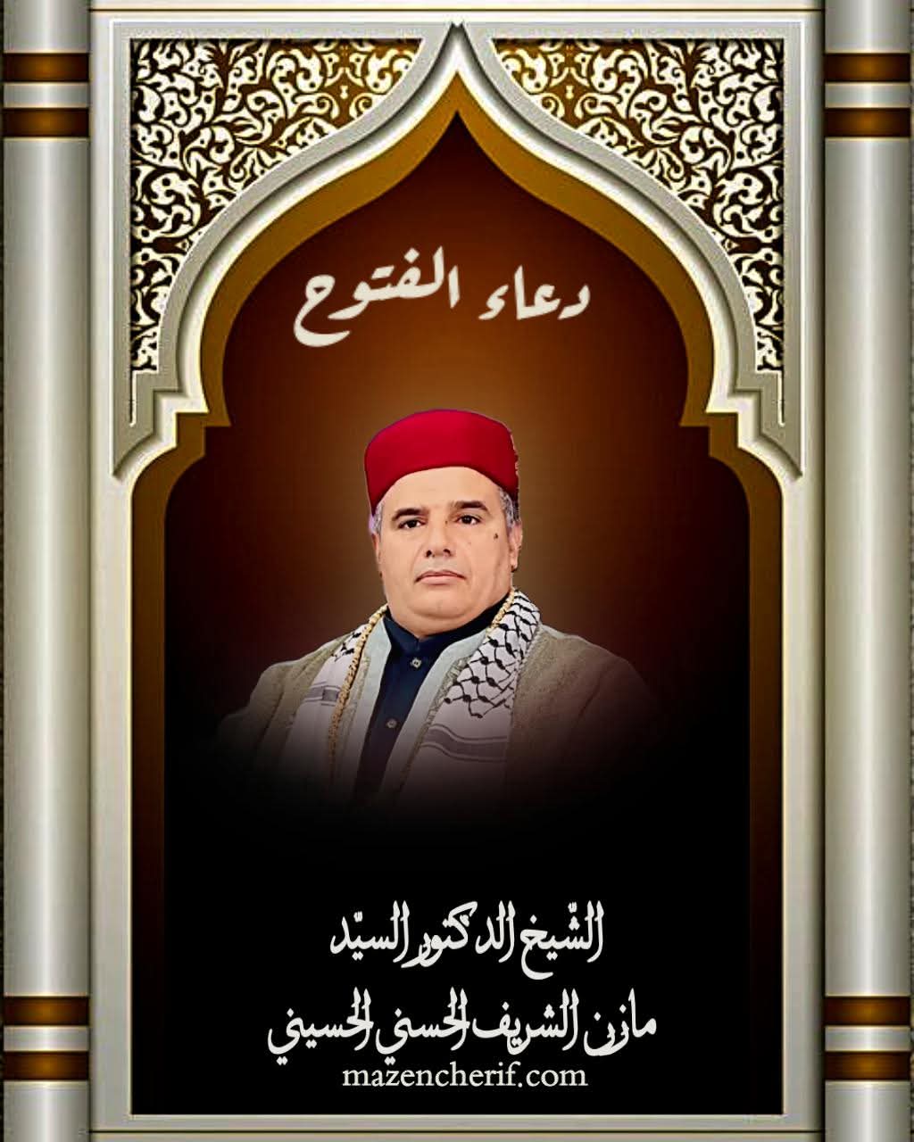اللهم رب الفتوح، ورب الملائكة والروح، الكريم الفتّاح، الحي السبّوح، القدوس الرزاق الوهّاب، البرّ التوّاب، رب ألم وسرّها، وألر وخيرها، وعسق وأمرها، ويس ونورها، وكهيعص ومددها، وطه ونفحها، وق وقوتها، وص وجبروتها، وحم وملكوتها، ورب كل سر في كل حرف وكلمة، ورب روحانية الكلمات ونورانية الحروف، وأسرار ما في القرآن من حرف وكلمة وآية وسورة وحزب، ومن كل خير وسر فيه، ورب المقاليد والخزائن التي لا تنفذ ولا تبيد، ورب المنح والنفح والعطاء وكشف الغطاء، ومولى كل فضل وعطيّة، وصاحب كل نائل وهديّة، ورب كل مكرمة سخيّة، رب النبي والقديسة التقية، وإله كل ولي وولية، من فتحت عليهم فتوحا، ونفخت فيهم من السر روحا، وذا الجلال والاكرام ومولاه وصاحبه، ورب الرحمة المهداة باب المكرمات وخزانة الكرامات ومفتاح الخيرات ومقلاد النعم الباقيات، افتح لي من لدنك فتحا مبينا، وهبني عزا وتمكينا، وارزقني من خير ما رزقت به المحبين، وأنعم على إنعامك على المحبوبين، وأغدق علي غدق من منحته اليسر بعد أن كتبت علي العسر سنينا، ولا تجعل في العطاء غطاء يحجب الحمد والشكر وينسي الدعاء والذكر وينزع السكينة. واجعله رخاء سخاء رواء مَعينا. كما ابتليت إبراهيم بكلمات فاتمهن وفتنت موسى فتونا، ثم جعلت لهما نصرا وفتحا وركنا مكينا، فاجعل للفقير إليك من نفح ذلك مددا متينا، بسر أسرار آمينَ. والحمد لله رب العالمين.