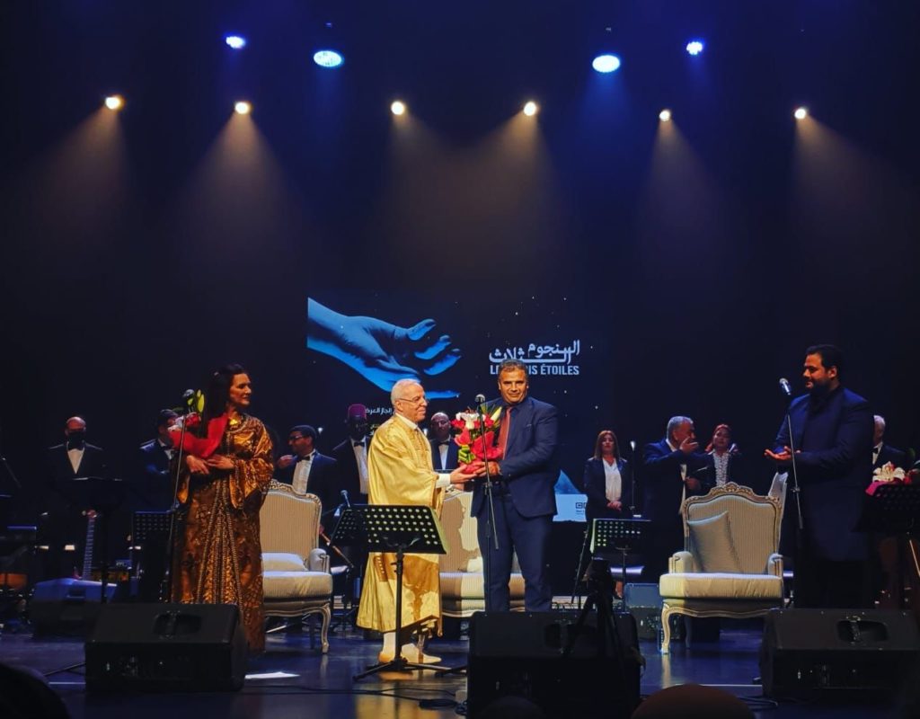 “ونؤمن بالحب فالحب دين. سلام إخاء لكل البشر”.بيت من قصيدتي: انا العربي،كان شعارا لحفل النجوم الثلاث.وقد كان ضمن المقطع الذي ادته الفنانة اليهودية المغربية...