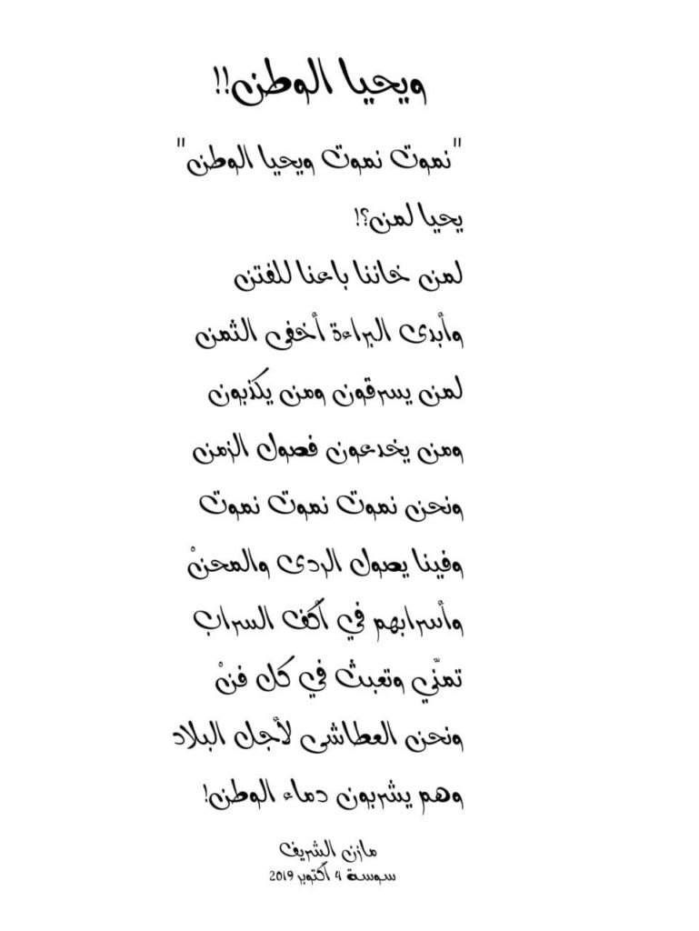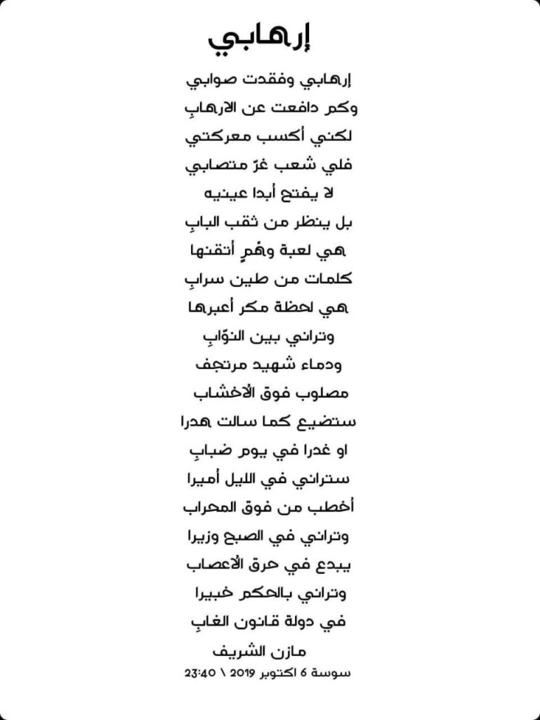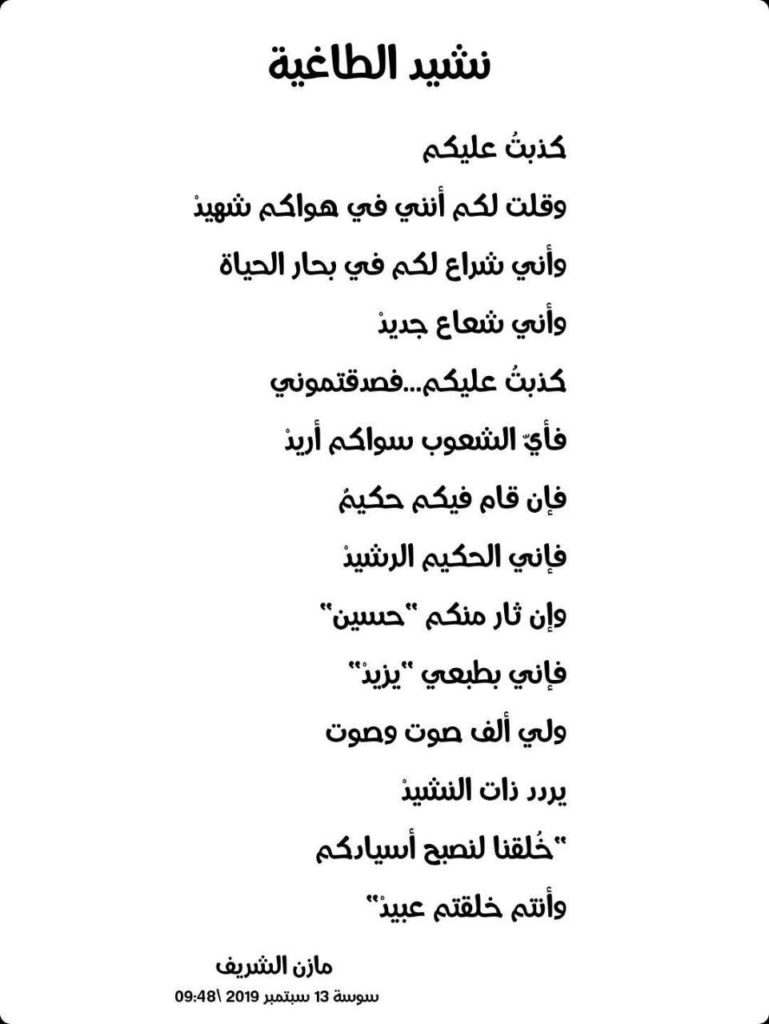 إلى شهداء الوطن. وخاصة شهداء الأمن والجيش الذين افتدوا بلادهم بدمائهم الزكية. وأضاؤوا لنا عتمة الطريق لنكمل المسير.. ******** (عامي تونسي حضري) أَنا يا...