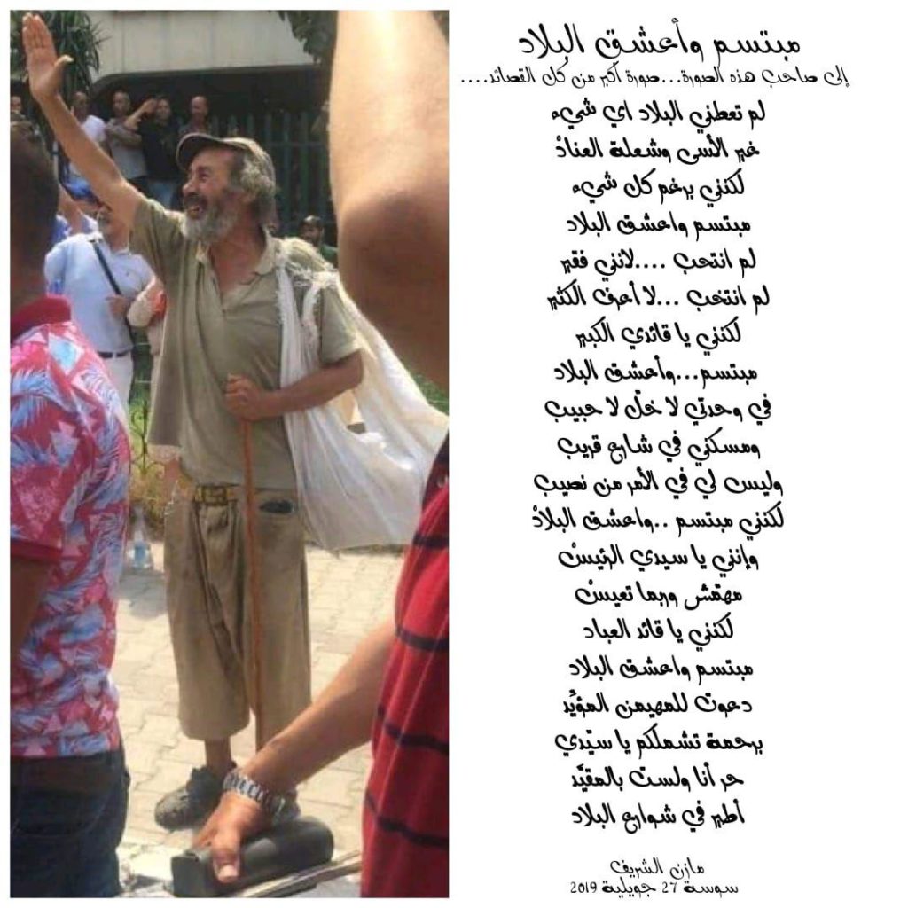 يَا تونُسَ الأمْـجــادِ يَا خَـــضْـراءُ أَأقُـــول جُــنَّ بِـوصـفِكِ الـــشُّــعـــراءُ أم جُــنَّ عَــقـلُ الـشِّــعــرِ تــَاهَ صبابَةً كـجُــنُــون صَـبٍّ والْــجُــــنُـــونُ ســـواءُ يَا عـشْـــقَ قَلبٍ قد تقمَّصَهُ